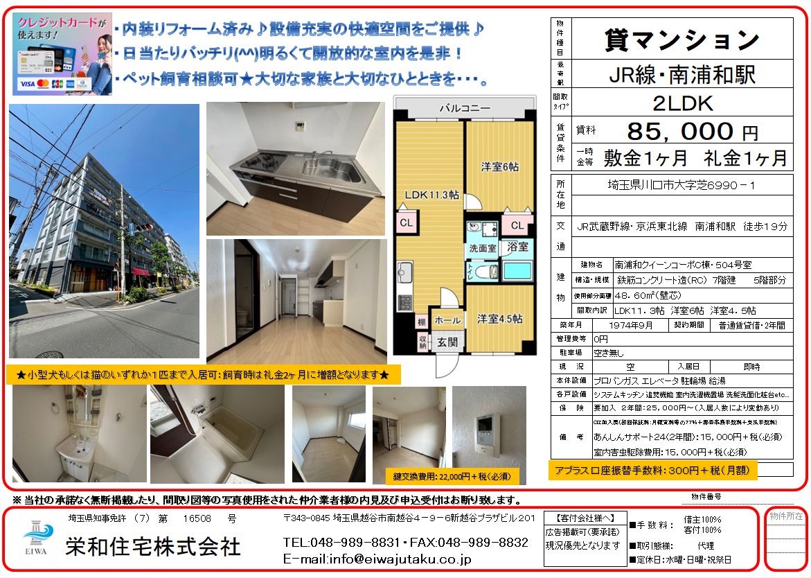 ★契約者募集★ 南浦和クイーンコーポC棟・504!